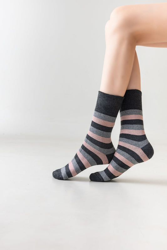 5 pár vastag termo női zokni gumi nélkül, 5819 csíkos