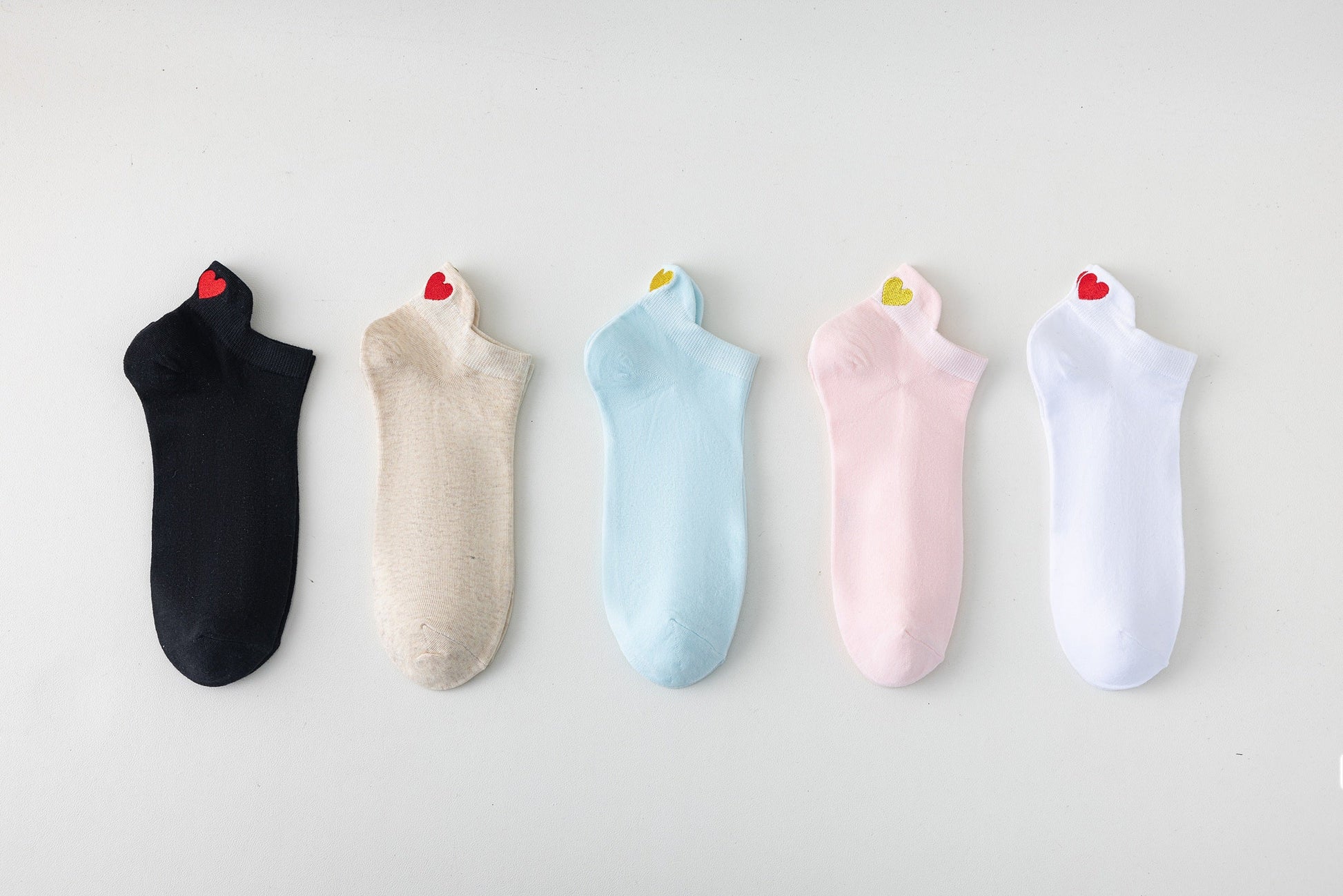 ✔ 6 pár alacsony derekú női zokni különböző színkombinációkban, piros szívvel
