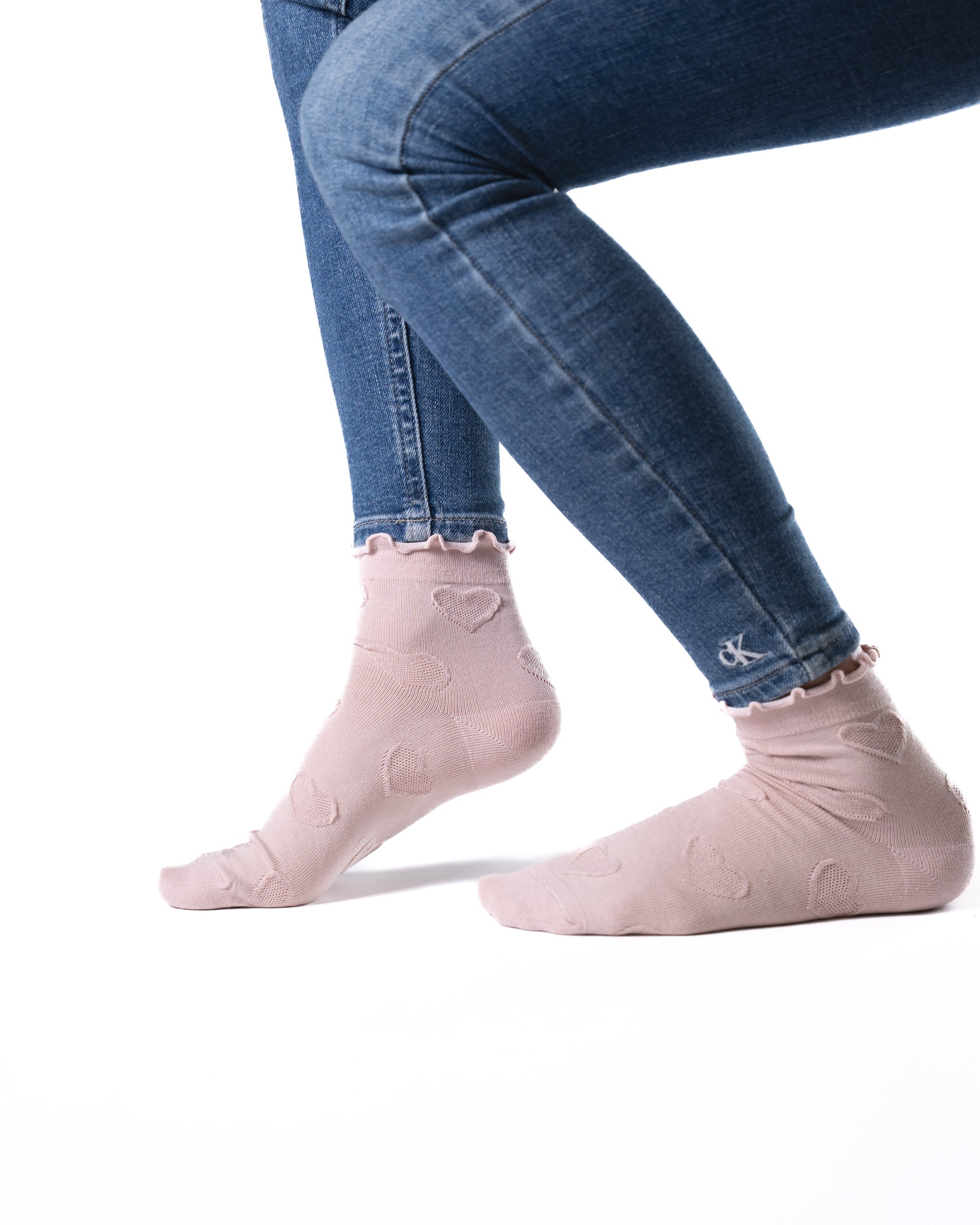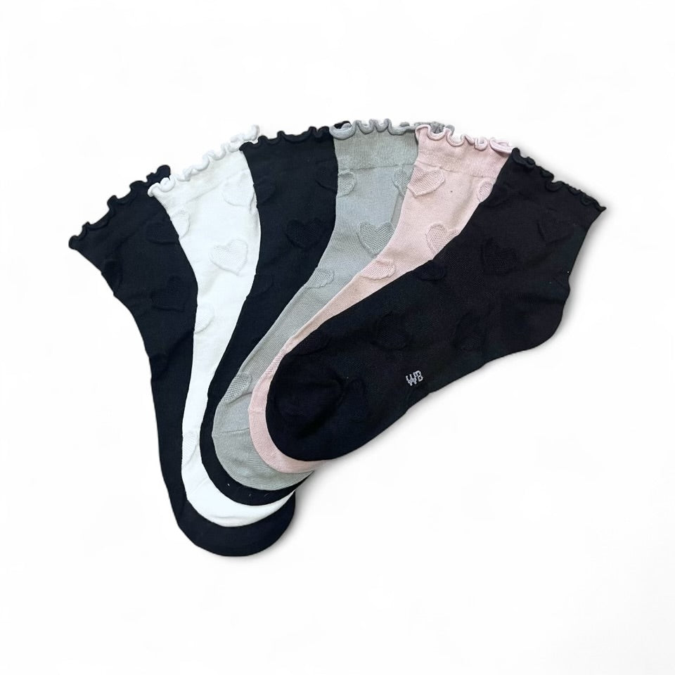 6 pár női félmagas guminélküli zokni, dombornyomott szívecskével 5947