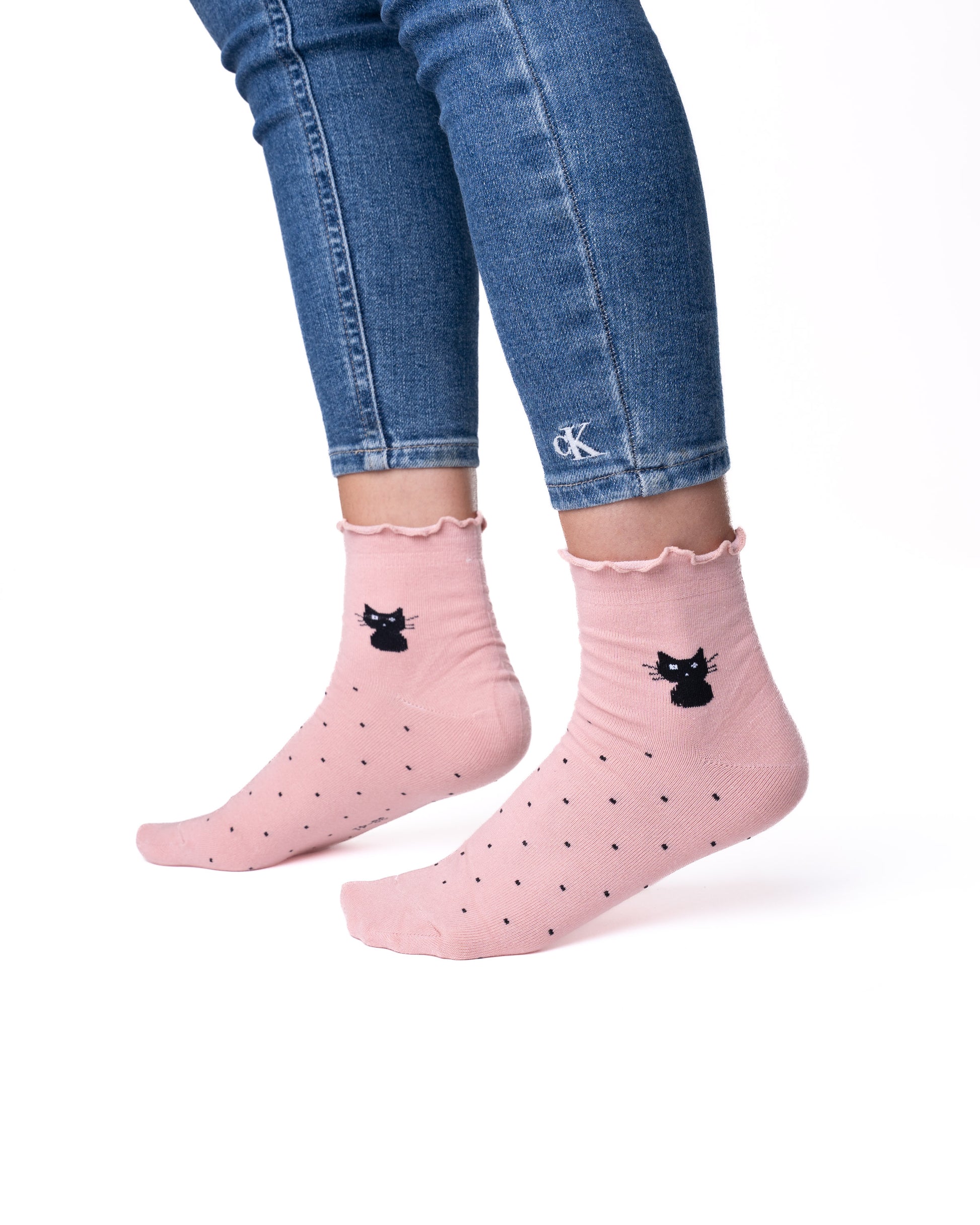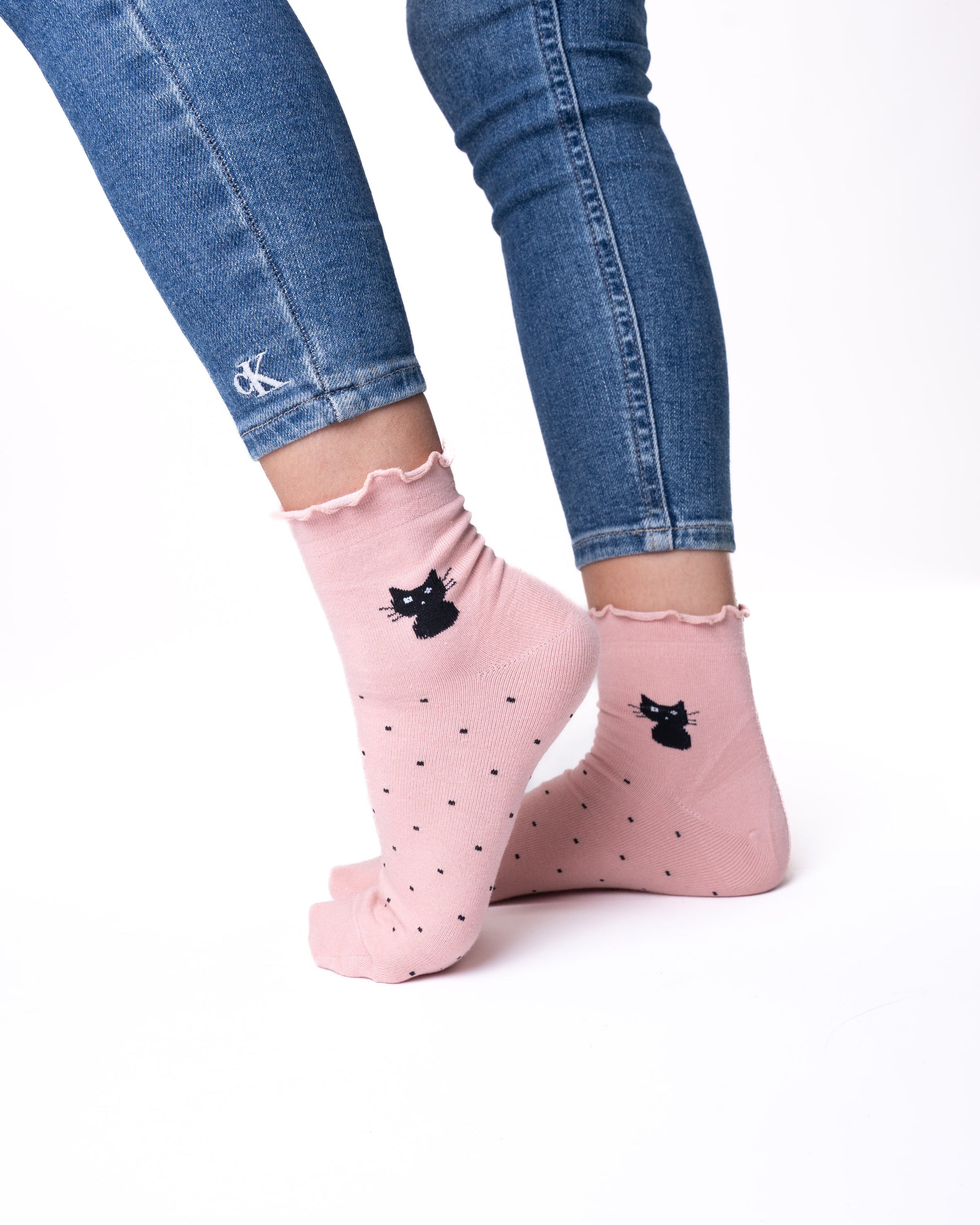 ✔ 6 pár női félmagas elasztikanélküli zokni, macska