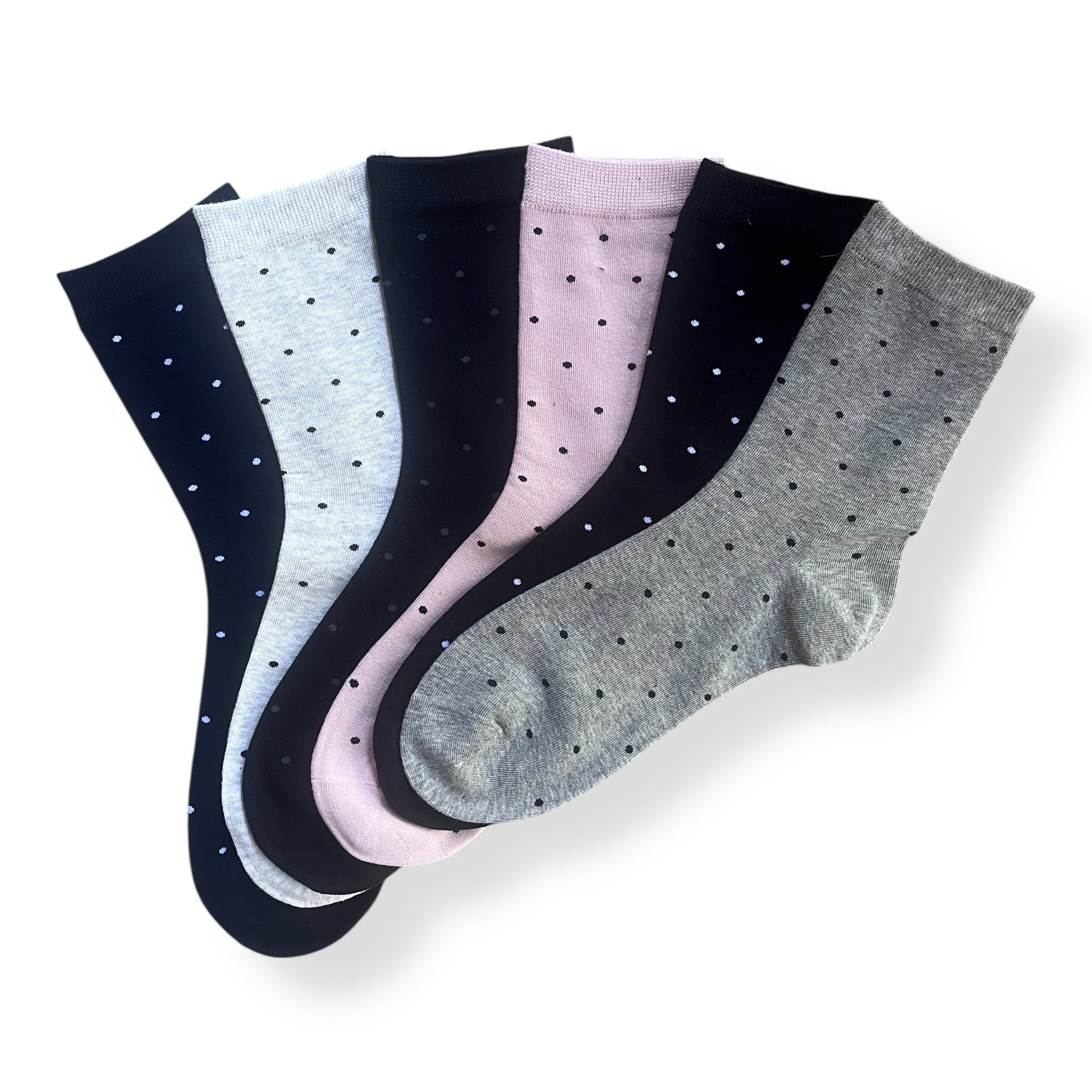 ✔ 6 pár női zokni különböző színekben, pöttyökkel